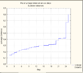 Рис. 3.7. Використання методу Уорда Отримуємо таблицю евклідових відстаней зазначену на рис. 3.8.: