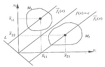 Геометрична інтерпретація цих функцій - дві паралельні прямі, що проходять через центри класів як на рис.2.2.