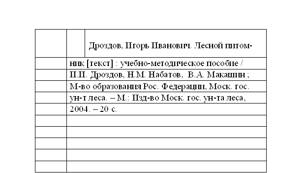 Литература. 1. Блюменау Д.И. Информационный анализ / синтез для формирования вторичного потока документов [Текст ]: учеб. пособие / Д.И. Блюменау. – СПБ., 2002. – 235 с. 2. ГОСТ 7.59-90. Индексирование документов. Общие требования к систематизации и предметизации // Стандарты по библиотечно- информационной деятельности [текст]/ сост. Т.В. Захарчук, О.М. Зусман. – СПб., 2003.- С 258-267. 3. ГОСТ 7. 82-2001. Библиографическая запись. Библиографическое описание электронных ресурсов. . 4. ГОСТ 7.80-2000. Библиографическая запись. Библиографическое описание электронных ресурсов. 5. ГОСТ 7.1-2003. Библиографическая запись. Библиографическое описание. Общие правила и требования составления // Стандарты по издательскому делу [текст]: Сб.док./ сост. А.А. Джиго, С.Ю. Калинин. М., 2004. 6. Сукиасян Э.Р. Библиотечные каталоги [Текст]: учеб. пособие. – М., 2001. |