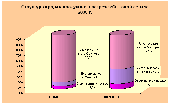 Активному продвижению продукции ОАО «Томское пиво» на региональном рынке способствовали: тесное взаимодействие с дистрибьюторами, мотивация их за выполнение плановых показателей по продажам, ритмичность выборки продукции, соблюдение финансовой дисциплины, оплата за содержание эксклюзивных торговых представительств в городах Сибири, рекламная поддержка, предоставление торгового оборудования. Таблица Продвижение продукции ОАО «Томское пиво» на региональном рынке