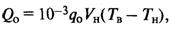 где q0 — удельная отопительная характеристика здания, представляющая собой поток теплоты, теряемой 1 м3 объема здания по наружному обмеру в единицу времени при разности температур внутреннего и наружного воздуха в 1 К, Вт/(м3 • К): в зависимости от объема и назначения здания q0 = 0,105...0,7 Вт/(м3 • К); Vн — объем здания без подвальной части по наружному обмеру, м3; Тв — средняя расчетная температура внутреннего воздуха основных помещений здания, К; Тн — расчетная зимняя температура наружного воздуха для проектирования систем отопления, К: для Волгограда 248 К, Кирова 242 К, Москвы 247 К, Санкт-Петербурга 249 К, Ульяновска 244 К, Челябинска 241 К. Q0=10-3*0,5*500*(295-248)=11,75 кВт Расход теплоты на вентиляцию производственных зданий, кВт,