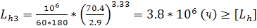 5.3 Проверочный расчет подшипников на долговечность по динамической грузоподъемностиДолговечность подшипников в часах определим по формуле: