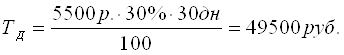 (4) Где Тд - дополнительный товарооборот под воздействием рекламы в рублях, Тс - среднегодовой товарооборот до рекламного периода в рублях, П - прирост среднегодового товарооборота за рекламный период в процентах, Д - количество дней учета товарооборота в рекламный период.