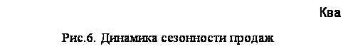 Самой важной деталью для каждой рекламной кампании является период ее начала. Поэтому реклама должна предшествовать периоду, выбранному на графике сезонности, (то есть выделенные временные интервалы, в данном случае месяцы сдвигаются на одно значение вперед). Это делается в соответствии с предположением, что потребитель должен накопить необходимую для совершения "критической массы покупок" рекламную информацию (а для этого нужен период предварительного воздействия, равный одному месяцу). Итак, для данного случая возьмем период равный одному месяцу. (Табл.4, рис.4). Таблица 4. Сдвиг в подаче рекламной информации (1 мес)