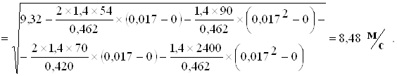 На границе первого и второго участка (0,017 до 0,020 м) происходит ударное присоединение затвора. Коэффициент восстановления скорости после удара в этом случае равен нулю, скорость затвора перед ударом также равна нулю. Поэтому скорость затворной рамы и затвора после удара, т.е. скорость затвора и затворной рамы в начале второго участка, будет равна:
