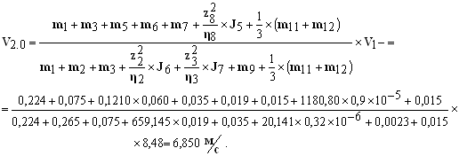 На пятом участке происходит отражение гильзы. Для упрощения примем, что отражение гильзы происходит мгновенно, а не на 2 мм. Таким образом, пятый участок из расчета выпадает, тогда скорость в начале шестого участка будет: