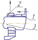 5. 4. Запирание затвора. Запирание затвора осуществляется клином. При движении затворной рамы 1 вперед, она передним скосом воздействует на скос клина 2 и заставляет его подняться. Нижней частью клин попадает в паз затвора 3 – происходит запирание.