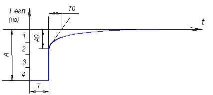Рис. 2.3. Імпульс релейної форсировки Задачею АСР в такому випадку було: 1. не допустити зростання частоти обертання вала турбіни. 2. швидко знизити потужність енергоблоку до рівня власних витрат. Результатом даного експеременту є графічна залежність (рис 2.4) РИ. З даної графічної залежності видно, що де-який час значення таких параметрів, як частота обертання вала турбіни (F), потужність генератора (Nел) та струм ЕГП (Іегп) знаходились в межах, що відповідають нормальному режиму роботи енергоблока і були сталими: F=3000 об/хв; Nел=980 МВт; Іегп=0 мА;
