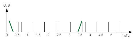 боковые колебания с частотой Найдём составляющие боковых полос и их амплитуды и построим спектрограмму модулированного сигнала (рисунок 1). Амплитуда