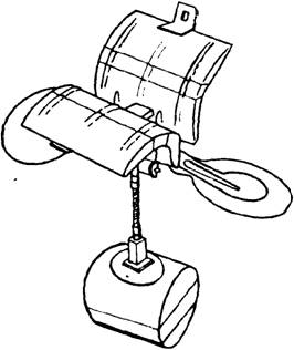 Мал. 2-40. Заряд (міна) “Тёртл" Об'ємна циліндрична міна (мал.2-41) звичайно має корпус з тонколистового металу. Вона виготовлялася з контейнерів для збереження артилерійських і мінометних боєприпасів і шматків труб великого діаметра (використовуваних, наприклад, у польових трубопроводах). Крім того, відзначалося застосування для цієї мети добре маскуємих порожніх шматків бамбука. Розміри і вага таких мін можуть бути найрізноманітнішими, хоча загальна вага коливається в межах 2,5-ІІ кг. Зарядом ВР звичайно був тротил, хлорат чи калію суміші місцевого готування. Часто заряд ініціюється електричним способом сапером, що знаходиться на невеликому видаленні і має чи батареї підривну машинку. Можливо також приведення в дія механічна способом, тертковим взривачем чи взривачем уповільненої дії, міна має детонатори, що розташовуються з обох торців корпуса для збільшення надійності спрацьовування. У ході війни були виявлені міни вагою до 40 кг, і тому важко установити Точну вагову межу для засобів цього типу.