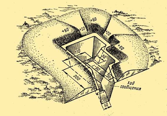 Окоп для химического наблюдательного поста Задачу на наблюдение командир отделения получает от командира взвода или командира (начальника), которому подчинен пост. Командир отделения, получив задачу, изучает район наблюдения, выбирает место для химического наблюдательного поста и укрытие для машины, уточняет порядок поддержания связи и доклада о результатах наблюдения, отдает приказ личному составу отделения. При постановке задач подчиненным командир отделения в боевом приказе указывает: задачу отделения (место химического наблюдательного поста и район наблюдения); задачи личному составу (место наблюдения, на что обращать особое внимание при наблюдении, время включения приборов, порядок подачи сигналов оповещения и доклада о результатах наблюдения; место развертывания метеокомплекта, сроки проведения метеорологических наблюдений; место машины). После постановки задачи командир отделения назначает наблюдателя, указывает сроки и порядок его смены, проверяет исправность средств связи, докладывает командиру (начальнику) о начале наблюдения и передает ему метеоданные, организует инженерное оборудование и маскировку химического наблюдательного поста, составляет схему ориентиров и управляет действиями подчиненных. Наблюдатель, получив задачу, занимает указанное ему место в окопе или машине, ведет непрерывное наблюдение в заданном районе, в установленные сроки включает приборы и следит за их показаниями, проводит метеорологические наблюдения и измерения. При вспышке ядерного взрыва наблюдатель принимает меры защиты. После прохождения ударной волны он определяет время, направление (азимут) ядерного взрыва, включает прибор радиационной разведки, устанавливает направление движения радиоактивного облака. О результатах наблюдения докладывает командиру отделения. При непосредственной угрозе или обнаружении химического заражения командир отделения (наблюдатель) подает сигнал «Химическая тревога» и докладывает об этом командиру (начальнику), выставившему химический наблюдательный пост. Подав сигнал оповещения, наблюдатель переводит средства индивидуальной защиты в «боевое» положение, определяет уровни радиации, тип ОВ и докладывает результаты наблюдения командиру отделения. После обнаружения радиоактивного и химического заражения, а также в случае резкого изменения метеорологических условий наблюдатель проводит внеочередное метеорологическое измерение. При смене наблюдатель сообщает заступившему результаты наблюдения, на что обращать особое внимание, передает ему приборы радиационной и химической разведки и другое имущество химического наблюдательного поста. Командир отделения, получив доклад от наблюдателя, уточняет его данные и докладывает их командиру (начальнику), выставившему химический наблюдательный пост. О результатах наблюдения командир отделения делает запись в журнале наблюдения, организует разведку зараженной местности и воздуха в контролируемом районе и периодический контроль за изменением уровней радиации и наличием отравляющих веществ. Перемещение ХНП производится по указанию командира (начальника), выставившего его. В ходе перемещения в новый район отделение ведет радиационное и химическое наблюдение с машин. По прибытии в новый район командир отделения уточняет место 