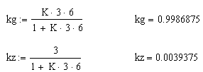 Здесь Kg, Kz – представляют собой суммарные коэффициенты усиления соответственно задающего и возмущающего воздействия и могут быть определены из передаточных функций системы, найденных по задающему и возмущающему воздействиям.
