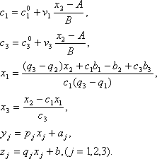 Применяя так называемый метод последовательных приближений, выбираем произвольно некоторое начальное значение x2 = (x2)0, после чего находим (r2)0 и из следующего уравнения вычисляем значение x2 = (x2)1. Если бы начальное значение x2 было выбрано правильно, т.е. удовлетворяло бы уравнениям, то тогда (x2)0 = (x2)1. В противном случае (x2)0 ≠ (x2)1. Тогда с новым значением (x2)1 вычисляем аналогичным путем следующее приближение (x2)2. Если (x2)1 ≠ (x2)2, то вычисляем дальше и так до тех пор, пока два последующих приближения не сойдутся в пределах заданной точности. 4. Далее находим: