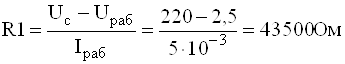 По [7] принимаем R1=47кОм Мощность рассеиваемая на резисторе R1