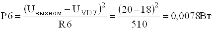 По [7] выбираем R6=510Ом. Мощность рассеиваемая на резисторе R6: