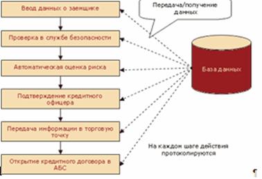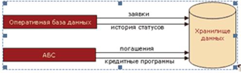 Рисунок 9 - Последовательность прохождения анкеты заемщика через службы банка В ряде случаев предпочтительно создание хранилища данных, в котором содержатся консолидированная информация по заявкам с анкетами заемщиков и истории принятия решений по выданным кредитам и погашениям кредитов. Это позволит сосредоточить информацию о потребительском кредитовании в едином источнике и снизить нагрузку на оперативную базу данных.