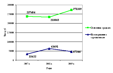 Для большей наглядности представим динамику дефицита и излишков активов баланса ОАО «ВК и ЭХ» за 2007 – 2009 гг. на рисунке 8.