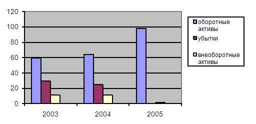- свидетельствующие об определенных недостатках в работе предприятия, которые могут быть выявлены по данным аналитического учета: «Дебиторская задолженность», «Прочие оборотные активы», «Кредиторская задолженность» (просроченная). Из таблицы 2 видно, что «Спорт-кафе» испытывало финансовые трудности, так как на 01.01.2003г. убытки составили 44,8 тыс.руб. и на 01.01.2004 г. – 45 тыс. руб. К концу 2004 года предприятие улучшило финансовое положение, сумма финансовых ресурсов, находящихся в распоряжении предприятия, увеличилась за 2 года на 951,6 тыс.руб. или на 633,6% и составила 1101,8 тыс. руб. Проведем оценку изменения валюты баланса за анализируемый период. 150,2 – 44,8 (убытки) = 105,4 тыс. руб. - итог валюты баланса на 01.01.2003 г. 181,8 – 45,0 (убытки) = 136,8 тыс. руб. – итог валюты баланса на 01.01.2004 г. 1101,8 тыс. руб. – итог валюты баланса на 01.01.2005 г. Сравнение итогов валюты баланса за анализируемый период: 136,8 – 105,4 = 31,4 тыс. руб. - изменение валюты баланса за 2003 г. 1101,8 – 136,8 = 965,0 тыс. руб. – изменение валюты баланса за 2004г. 1101,8 – 105,4 = 996,4 тыс. руб. – изменение валюты баланса за 2 года. Увеличение валюты баланса за 2003 год на 31,4 тыс. руб. и за 2004г. на 965,0 тыс. руб. свидетельствует о росте производственных возможностей «Спорт-кафе» и заслуживает положительной оценки (диаграмма 1). Горизонтальный анализ заключается в построении одной или нескольких аналитических таблиц, в которых абсолютные балансовые показатели дополняются относительными темпами роста (снижения). Цель горизонтального анализа состоит в том, чтобы выявить абсолютные и относительные изменения величин различных статей баланса за определенный период, дать оценку этим изменениям. В «Спорт-кафе» валюта баланса за 2 года увеличилась на 633,6% и составила на 01.01.2005 г. 1101,8 тыс.руб, внеоборотные активы увеличились на 14,5% или на 2,4 тыс. руб., что произошло за счет увеличения основных средств, оборотные активы увеличились на 1119,4% или на 994 тыс. руб. Положительной оценки заслуживает увеличение IV раздела «Капитал и резервы» до 259,4 тыс.руб. на 01.01.2005г.