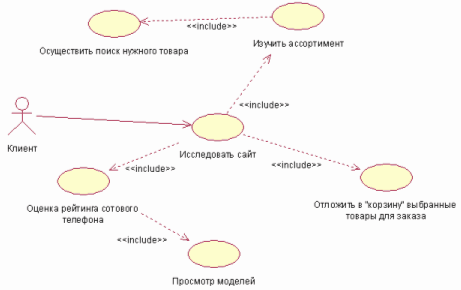 Рис.2.3 Диаграмма вариантов использования. На рисунке 2.4 представлена диаграмма, которая более подробно раскрывает процесс исследования web-сайта клиентом.