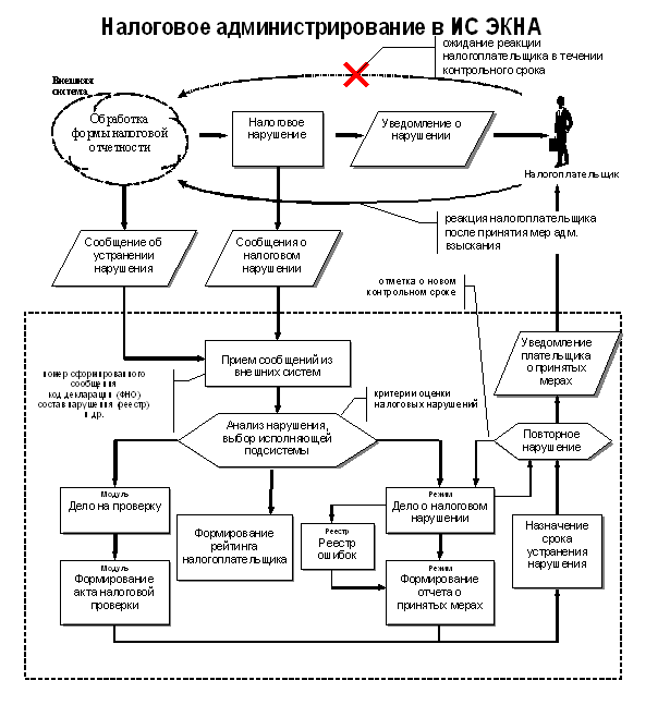 Рисунок №3 Внешние, по отношению к ИС ЭКНА, информационные системы регистрируют налоговое нарушение при приеме форм налоговой отчетности от налогоплательщика, при этом обеспечивается предварительная обработка налогового нарушения, с целью отсева нарушений, вызванных «техническими» проблемами при обработке налоговой отчетности.