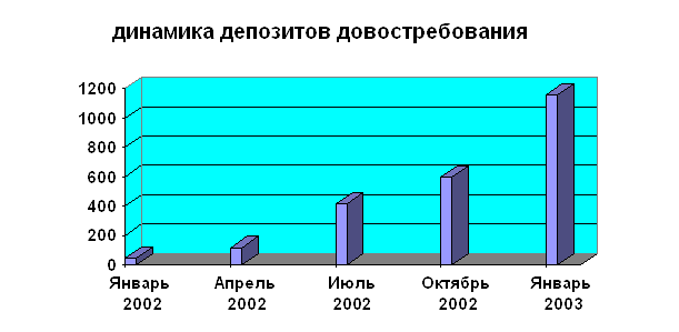 Из этой диаграммы видно, что банк агрессивно пытается завладеть данным сегментом рынка. А значит он будет работать и работает здесь с юридическими лицами. Тоже самое можно сказать и по депозитам до востребования.