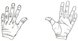 Количество Единицы показываются на уровне подбородка, десятки – лба. Промежуточные значения обозначают, комбинируя десятки и единицы.