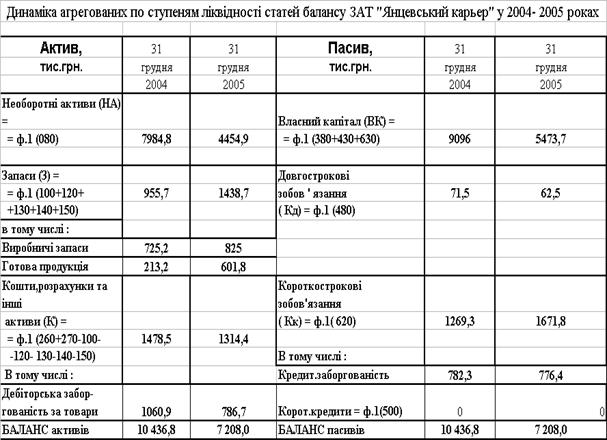 Додаток В Таблиця В.1 Баланс ВАТ “Янцівський гранітний кар ' єр” за 2004 –2005 роки