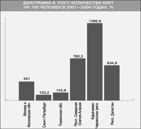 Диаграмма 6. Рост количества карт на 100 человек в 2001-2004 годах[29]