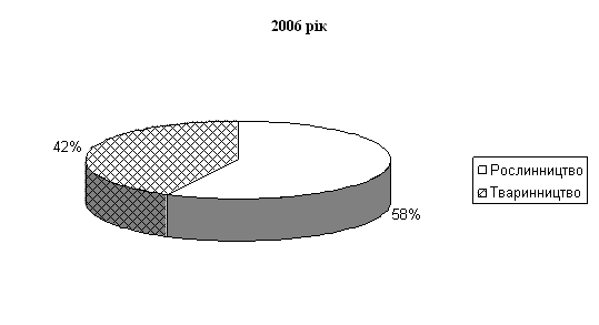 Провівши розрахунки в таблиці, можна зробити висновок, що в 2006 році в порівнянні з 2004 роком вартість виробленої валової продукції в співставних цінах 2000 р. на 1 працівника збільшилася на 16,5 тис. грн. Фондозабезпеченість у 2006 році склала 0,89 тис. грн., що на 0,64 тис. грн. більше ніж у 2004 р. Фондоозброєність збільшилася і склала 20,6 тис. грн. Це пов’язано зі збільшенням вартості основних засобів, площі с/г угідь і зменшення чисельності робітників. Збільшення цих показників свідчить про покращення виробничих можливостей товариства. За рахунок підвищення вартості основних виробничих фондів у 2006 році збільшилась фондомісткість на 400 грн. Фондовіддача знизилась на 3340 грн. і в 2006 році склала 1700 грн. Отже, можна зробити висновок, що підприємство достатньо забезпечене основними засобами, але необхідно підвищити ефективність їх використання. Для аналізу та розрахунку структури товарної продукції та рівня спеціалізації складемо таблицю. Таблиця 2.4. Склад та структура товарної продукції
