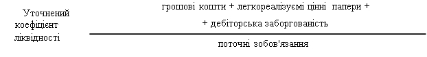 . Існує думка, що «Значення цього показника, рівне не менше 1, звичайно свідчить про стійке фінансове положення позичальника». Проте спеціалісти добре розуміють, що сьогодні, в епоху інформаційних технологій, що дозволяють організовувати системи електронних платежів, для зміни залишку грошових коштів на рахунку потрібні не години, не хвилини, і навіть не секунди, а лічені їх частки. Це означає, що уточнений коефіцієнт ліквідності може змінюватися в лічені частки секунди в десятки, сотні, а то й тисячі раз. Водночас баланс, на основі даних якого розраховується цей коефіцієнт, складається відповідно до Закону України «Про бухгалтерський облік та фінансову звітність в Україні» усього лише чотири рази на рік. Таким чином, при оцінці кредитоспроможності використання уточненого коефіцієнта ліквідності, що розраховується поквартально, не тільки недоцільно, але й небезпечно, тому що може призвести до формування неадекватних економічних оцінок. Сказане вище ще в більшій мірі стосується коефіцієнта абсолютної ліквідності і почасти справедливо для коефіцієнта поточної ліквідності (коефіцієнта покриття). Коефіцієнт покриття процентних виплат (він же «доподаткове покриття відсотків») розраховується за формулою: