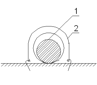 1 – енергопоглинаюча оболонка; 2 – прозора оболонка. Рис. 3.2 – Переносний сонячний колектор. Він являє собою рукав довжиною 25-50 м і діаметром 700 мм, виготовлений із чорної поліетиленової плівки. При подачі в рукав повітря під тиском 100-600Па він роздувається і набуває циліндричної форми. Цей рукав розміщують в оболонку, виготовлену із прозорої поліетиленової плівки. Її діаметр 800 мм. Для придавання оболонці необхідної форми у внутрішньому рукаві є спеціальні отвори, через які частина повітря потрапляє у простір між рукавом і оболонкою, роздуваючи її [5]. Колектор такої конструкції доцільно застосовувати тільки в тому випадку, коли можна обмежитися незначним підігріванням технологічного повітря. Більш перспективною для підігрівання повітря, яке подається у сіносушарку, є конструкція стаціонарного сонячного колектора, який розташовують на стіні і покрівлі сіносховища. Поперечний переріз такого колектора зображено на рис.3.3. Він складається із прозорої для сонячних променів покрівлі 1 ( скло, поліетиленова плівка ); покрівлі, яка поглинає сонячну енергію 2; шару теплоізоляції 3. повітря, яке подається у сіносушарку, проходить крізь простір 4 між прозорою і поглинаючою сонячну енергію покрівлями.