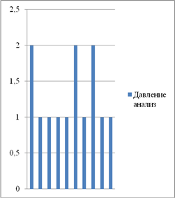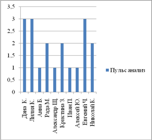 Условные обозначения анализа давления: 1 балл – низкое, 2 балла – нормальное, 3 балла – высокое. Условные обозначения анализа пульса: 1 балл – норма, 2 балла – выше нормы, 3 балла – высокий. Результаты, представленные в табл. 5, представлены на рис. 2-3.