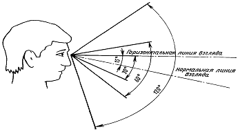 Рисунок 6.2 - Зоны зрительного наблюдения в вертикальной плоскости