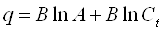 где СF – концентрация сорбированного полимера; Ct - равновесная концентрация полимера, оставшегося в растворе в момент времени t; KF и 1/n – константы, определяемые отрезком на оси ординат, отсекаемым касательной, проведенной к начальному участку кривой, и углом наклона, соответственно. Изотерма Темкина [30] описывает линейную зависимость: