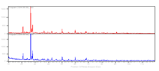 Рисунок 10 – Микрофотографии структуры поверхности керна с месторождения Бакланий Северный «до» (А) и «после» (Б) активации поверхности горячей 1 н HCl Изменения в структуре и составе керна после промывки его горячей соляной кислотой подтверждаются и данными рентгенофазового анализа. Из рисунка 11 видно появление новых, и уменьшение интенсивности других фаз. Это, по-видимому, обусловлено удалением из поверхности частиц керна пленок и различных микропримесей, а также химической модификацией поверхности.