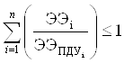 где ППЭi – плотность потока энергии, создаваемая источником ЭМИ под i-м номером; Тi – время воздействия i-го источника; n – количество источников ЭМИ. При одновременном облучении от нескольких источников ЭМИ СВЧ, для которых установлены разные предельно допустимые уровни (ПДУ), должны соблюдаться следующие условия: