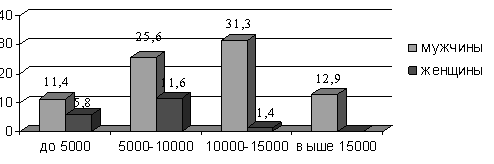 Графически данную структуру респондентов в зависимости от среднемесячного дохода.