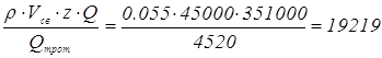 где r = 0,055 кг / м3 rо = 1,225 кг / м3 Ро = 101 КПа (атмосферное давление) То = 293 К (исходная температура) Q = 35 100 КДж / кг (теплота взрыва угольной пыли) z = 0.5 (склады заполнены наполовину ) x = 1 (резервуар герметичен) Найдём массу ГПВС: m = r * Vсв = 0,055 * 45 000 = 2 475 кг Рассчитаем тротиловый эквивалент взрыва: Gтр