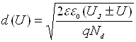 Для практичних розрахунків використовується наступна емпірична залежність напруги пробою від концентрації легуючої домішки та ширини забороненої зони: