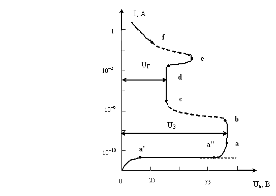 залежностей напругу пробою Ub – як початкову ділянку різкого зростання струму. По знаку