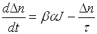 Знайдемо розв’язок (3.5), вважаючи, що Δp=Δn<<p0 і p0<<n0 і що напівпровідник починає освітлюватись в момент t=0 світлом постійної інтенсивності. Тоді, розділюючи змінні і інтегруючи з врахуванням початкової умови Δn=0 при t=0, одержуємо