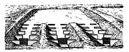 Рис. 10. Садок для выдерживания производителей рыбца Расход воды в садке составляет 60 – 85 л/с, а плотность содержания в нем производителей может быть до 5 особей на 1 м2. При наступлении нерестовых температур производители рыбца по мере созревания гонад выходят из садков в нерестовые канавы. Массовый заход производителей в эти канавы происходит при температуре воды 18 °С. За зашедшими в канавы производителями ведут наблюдение. При обнаружении готовности производителей к нересту секции канав перегораживают решетками, уменьшают подачу воды и отлавливают их. От зрелых особей берут икру и сперму, а затем совместно с еще недозревшими рыбами их вновь сажают в садок для получения второй порции половых продуктов (Берлянд, 1953). Кроме указанного метода получения зрелых производителей рыбца, применяют метод выдерживания этой рыбы совместно с шемаей (Астанин, 1968). Физиологический метод. В 30-е годы Н. Л. Гербильский осуществил многочисленные гистологические исследования гипофиза рыб и раскрыл механизм его физиологического воздействия на созревание половых продуктов. В естественных условиях переход рыбы в нерестовое состояние осуществляется при наличии совокупности определенных факторов внешней среды. Они воспринимаются органами чувств рыбы, а через них действуют на ее центральную нервную систему – на гипоталамус. Клетки гипоталамуса выделяют гормон, активизирующий гормональную деятельность гипофиза. Выделяемый гипофизом гонадотропный гормон поступает в кровь и стимулирует созревание половых клеток, а также выход зрелых яиц (икринок) из фолликул и образование спермы. Во время нереста производители рыб выметывают зрелые половые продукты не все сразу, а постепенно. Так, самка выметывает икринки в воду по мере их овуляции. Совершаемые самкой движения приводят к разрыву следующих фолликул и продолжению вымета икринок. Н. Л. Гербильский установил гонадотропную активность гипофиза рыб в различные периоды годового цикла. Гонадотропный гормон поступает в кровеносную систему организма рыбы непостоянно и в различном количестве. В определенные сезоны года он накапливается в гипофизе. Это позволяет использовать гипофиз как источник гонадотропного гормона, при помощи которого можно получать зрелые половые продукты от производителей на рыбоводных предприятиях. При внутримышечных инъекциях производителям суспензии гипофиза рыб гонадотропный гормон поступает в кровь и стимулирует половой процесс. Это приводит к быстрому переходу половых желез производителей из IV в V стадию зрелости и получению от них зрелой, способной к оплодотворению и развитию икры у самок и доброкачественной спермы у самцов. Следовательно, при искусственном рыборазведении можно получать зрелые половые продукты от производителей путем инъецирования им препарата гипофиза. В этом случае созревание половых клеток, овуляция и образование спермы происходят, как и при естественном нересте, под влиянием гипофиза. Однако отличие состоит в том, что увеличение количества гонадотропного гормона гипофиза в крови производителей происходит не под влиянием нерестовых условий, усиливающих выделение собственного гонадотропного гормона, а при помощи введения им взятых гипофизов от других рыб (Привезенцев, 2004). Н. Л. Гербильский и Б. Н. Казанский установили, что для стимули