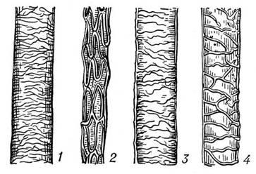 Рис. 2. Кутикула волоса (схема): 1 — человека;