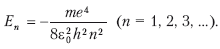 m – масса частицы, h – постоянная Планка, E – полная энергия, U – потенциальная энергия. Уравнение Шредингера является дифференциальным уравнением второго порядка и имеет решение, которое указывает на то, что в атоме водорода полная энергия должна иметь дискретный характер: E1, E2, E3… Эта энергия находится на соответствующих уровнях n =1,2,3,…по формуле: