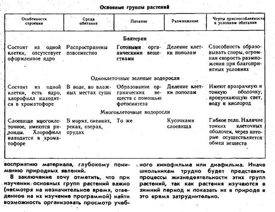 Реферат: Место изучения растительности в экологических исследованияхРеферат: Место изучения растительности в экологических исследованияхСодержание Введение Глава 1. Методика изучения темы "основные группы растений" Глава 2. Теоретическая поддержка темы "растительные сообщества" Структура и состав растительных сообществ Глава 3. Методические разработки Характеристика основных экологических групп растений ВведениеНепременным условием экологических исследований является определение взаимосвязей между живыми организмами и условиями среды. При этом изучение растительного покрова, представляющего единство флоры (совокупности видов исследуемой территории) и растительности (совокупности растительных сообществ) традиционно занимает одно из главных мест в синэкологических исследованиях. Это обусловлено тем, что растительность, с одной стороны, представляет каркас наземных экосистем и выполняет средообразующую функцию, а с другой - обладает рядом преимуществ, которые позволяют использовать ее в качестве индикатора (показателя) определенных условий среды, включая оценку последствий антропогенного воздействия. Глава 1. Методика изучения темы "основные группы растений" При изучении основных групп растений учащиеся продолжают знакомиться с разнообразием растительного мира на Земле, классификацией растений, с основными таксономическими категориями. Изучение основных групп растений способствует дальнейшему развитию знаний учащихся по систематике органического мира, позволяет установить филогенетические связи между отдельными группами растений, проследить черты усложнения организмов и подвести к выводу об историческом развитии растительного мира, установить закономерность возникновения различных приспособлений у растений к обитанию в определенной среде. Важно и то, что материал темы "Основные группы растений" позволяет формировать у учащихся основы диалектико-материалистического мировоззрения, способствует развитию атеистических взглядов школьников. Для более успешного решения учебно-воспитательных задач темы необходим тщательный отбор содержания учебного материала, изучаемого на уроке "Растительные сообщества"; в курсе зоологии - тема "Природные сообщества. Охрана животного мире" и др.). Как видно из анализа усовершенствованной программы, содержание экологического образования занимает в них значительное место. При этом отчетливо прослеживается определенная логика изучения проблем воздействия общества и природы: ценность экологических систем для человека, цели их использования. Последствия действия антропогенных факторов на экосистемы, проблема экологической опасности, взаимоотношения а системе "человек - общество - природа"; меры по охране экологических систем; нравственные и правовые аспекты экологии. Наибольшую роль в обобщении экологических знаний играет тема "Биосфера и человек" (общая биология, X класс), в которой естественнонаучные, социальные и нравственно-эстетические аспекты охраны природы рассматриваются в тесном единстве Морские водоросли. Значение водорослей в природе и хозяйстве" 8-й урок. Общая характеристика грибов. Строение, питание, размножение не примере шляпочных грибов" (Съедобные и ядовитые грибы.) 9-й урок. Плесневые грибы, их строение, питание и размножение. Дрожжи.10-й у