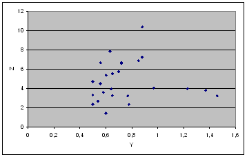 значущості 0,05 та Оскільки розраховані значення критерію Стьюдента для коефіцієнтів кореляції більші за критичне, можна стверджувати, що числові значення цих коефіцієнтів не являються випадковими. 3.2 Криволінійна кореляціяМіж параметрами моделі можливі також випадки криволінійної кореляції Для дослідження такої залежності потрібно досліджувану сукупність розділити на інтервали, які мають прямолінійний характер, і дослідити кожний участок окремо. Дослідимо