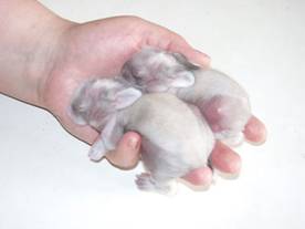 После 20-го дня жизни, когда уже все крольчата выходят из гнезда, гнездовые ящики из клеток удаляют, а клетки моют и дезинфицируют. С этого времени важно строго следить за доброкачественностью кормов, причем их количество увеличивают соответственно числу крольчат в помете. Обнаруженных при осмотре больных крольчат немедленно удаляют из клетки. О развитии крольчат судят по их живой массе. При нормальном развитии крольчата средних пород весят при рождении от 50 до 60г, крупных пород - от 55 до 65г и более. К шестому дню после рождения нормально развитый крольчонок должен весить 100-140г, к 20-му дню - 250-300г. При таком интенсивном росте крольчатам в первые 20 дней жизни требуется довольно много молока. Поэтому в основное стадо следует отбирать только высокомолочных крольчих, отличающихся хорошими материнскими качествами. №18. Содержание и кормление отъемных крольчатОтсадка и клеймение молоднякаКрольчат отсаживают от матери в возрасте 30-45 дней, в зависимости от того, какой календарь случек и окролов кроликовод применяет в своем хозяйстве. Обычно крольчат размещают в чистой (очищенной, вымытой, продезинфицированной) групповой клетке или в клетке для взрослых кроликов. Однако практика показала, что лучше отсаживать от ее помета крольчиху. В этом случае молодняк не сортируют по полу, а выращивают в прежнем составе до 3-месячного возраста. Далее молодняк сортируют по полу и лучших кроликов оставляют на племя и рассаживают: самцов - по одному, а самочек - по две-три в клетку. Молодняк, предназначенный для убоя на шкурку и мясо, разделяют по полу и рассаживают в клетки из расчета на каждого крольчонка не менее 0,2-0,3 м2 площади. Чтобы определить пол крольчонка, его берут за шкурку в области крестца, захватывая хвост, переворачивают брюшком вверх и пальцами правой руки отодвигают кожу на брюшке. У самки при этом видна продолговатая щель, направленная к хвосту, у самцов обнаруживается половой член в виде трубочки. Кормить крольчат-отъемышей в первые дни после отсадки следует такими же кормами, которые они получали, оставаясь с крольчихой. Новые корма вводят в рацион молодняка постепенно. Скармливание крольчатам недоброкачественных кормов недопустимо. В рационы молодняка следует включать высокопитательные легкоусвояемые корма - молодую зеленую траву или витаминное сено бобовых и бобово-злаковых растений, овес, вареный картофель, морковь и небольшое количество пшеничных отрубей. Из кормов животного происхождения наиболее желательны сухое молоко, мясокостная мука и мука из непищевой рыбы. Концентраты следует скармливать в дробленом (комбикорм) и плющеном виде. Наиболее интенсивно кролики растут и лучше оплачивают корм продукцией в первые 3/2-4 месяца жизни. Протеина в расчете на 100г кормовых единиц их рациона в этот период должно приходиться не менее 16г. В возрасте 90-120 дней кроликов переводят на рационы ремонтного молодняка, в расчете на 100г кормовых единиц которых приходится от 13 до 16 г перевариваемого протеина. Хорошие результаты при выращивании молодняка получены при скармливании ему полнорационных гранулированных комбикормов. В возрасте 46-60 дней можно давать примерно 85-140г полнорационных гранул, в 61-90 дней - 170-200г и в возрасте 91-135 дней - 200-260г. №29. Опишите породу кроликов белый пуховыйБелая пуховая - отечественная порода средних по величине пухо