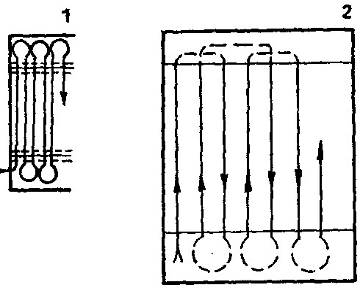 Рис.2. Способы движения: 1 – челночный; 2 – челночный односторонний Ширина поворотной полосы при петлевых поворотах (рис.1) (при челночном способе движения): Е = 2,8Rп + 0,5Ваг, м где: Rп – минимальный радиус поворота агрегата зависит от ширины агрегата (1,1Ваг), м; Ваг – ширина захвата посевного агрегата, м. Е = 2,8*1,1*10,8 + 0,5*10,8 =38,7 м. При беспетлевых поворотах (при загонном способе движения) (рис. 3): Е = 1,1Rп + 0,5Ваг, м Е = 1,1*1,1*10,8 + 0,5*10,8 = 18,5 м
