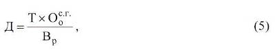 где Вр – объём реализованной продукции за определённый период времени, тыс.руб.; Ог- среднегодовые нормируемые и ненормируемые оборотные средства за это же время, тыс. руб. [9]