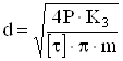 де P – навантаження, Р = 5,7кН; К3 – коефіцієнт запасу, К3 = 1,4;